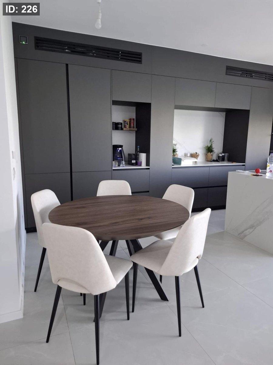 כולל 4 כיסאות מרופדים בעיצוב מודרני ונוח.